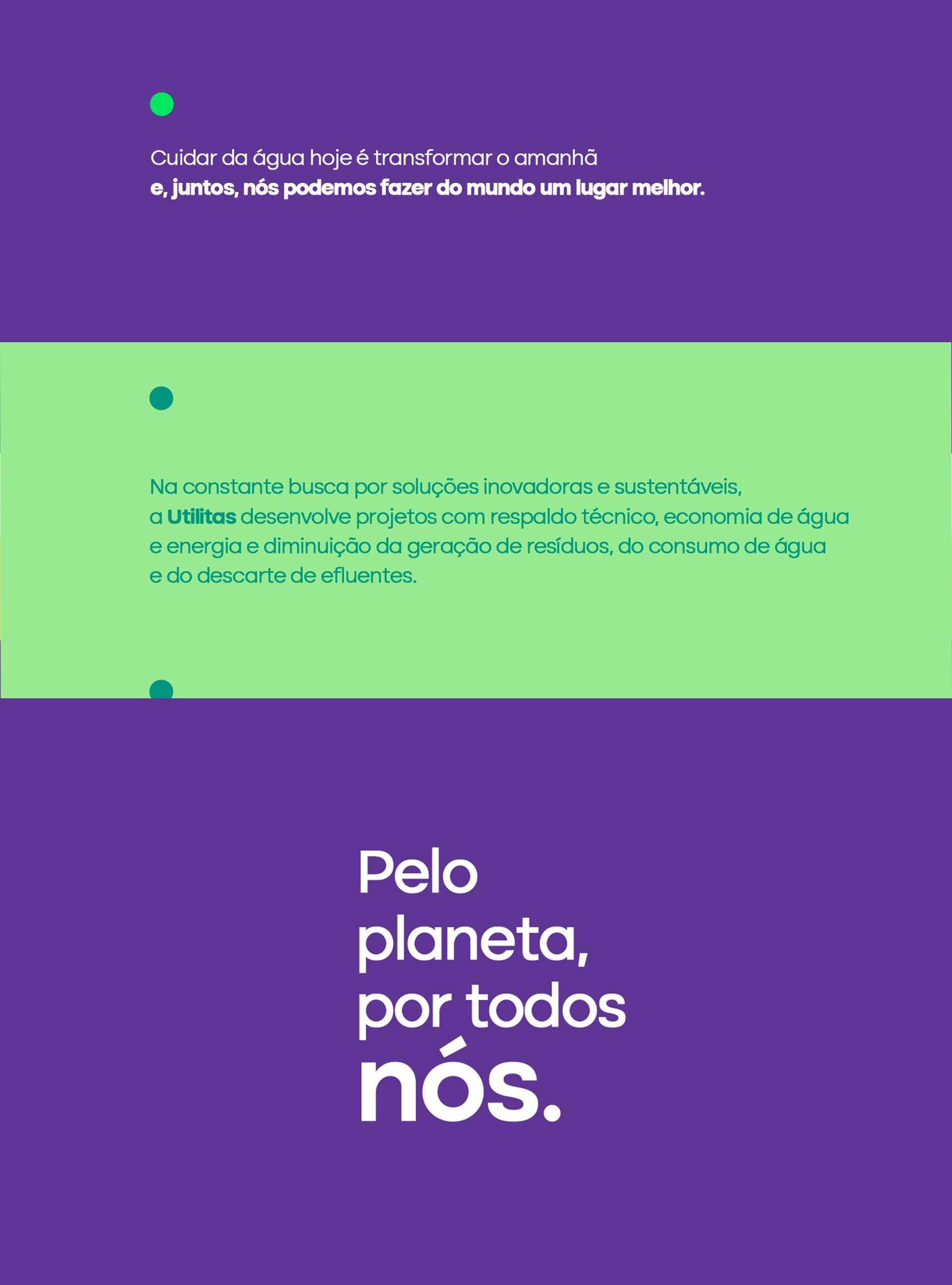 Desenvolvimento da marca para a Utilitas, empresa de saneamento, tratamento de água e efluentes. O projeto equilibra tecnologia, sustentabilidade e confiabilidade, com um design moderno, cores que remetem à natureza e aplicações versáteis.